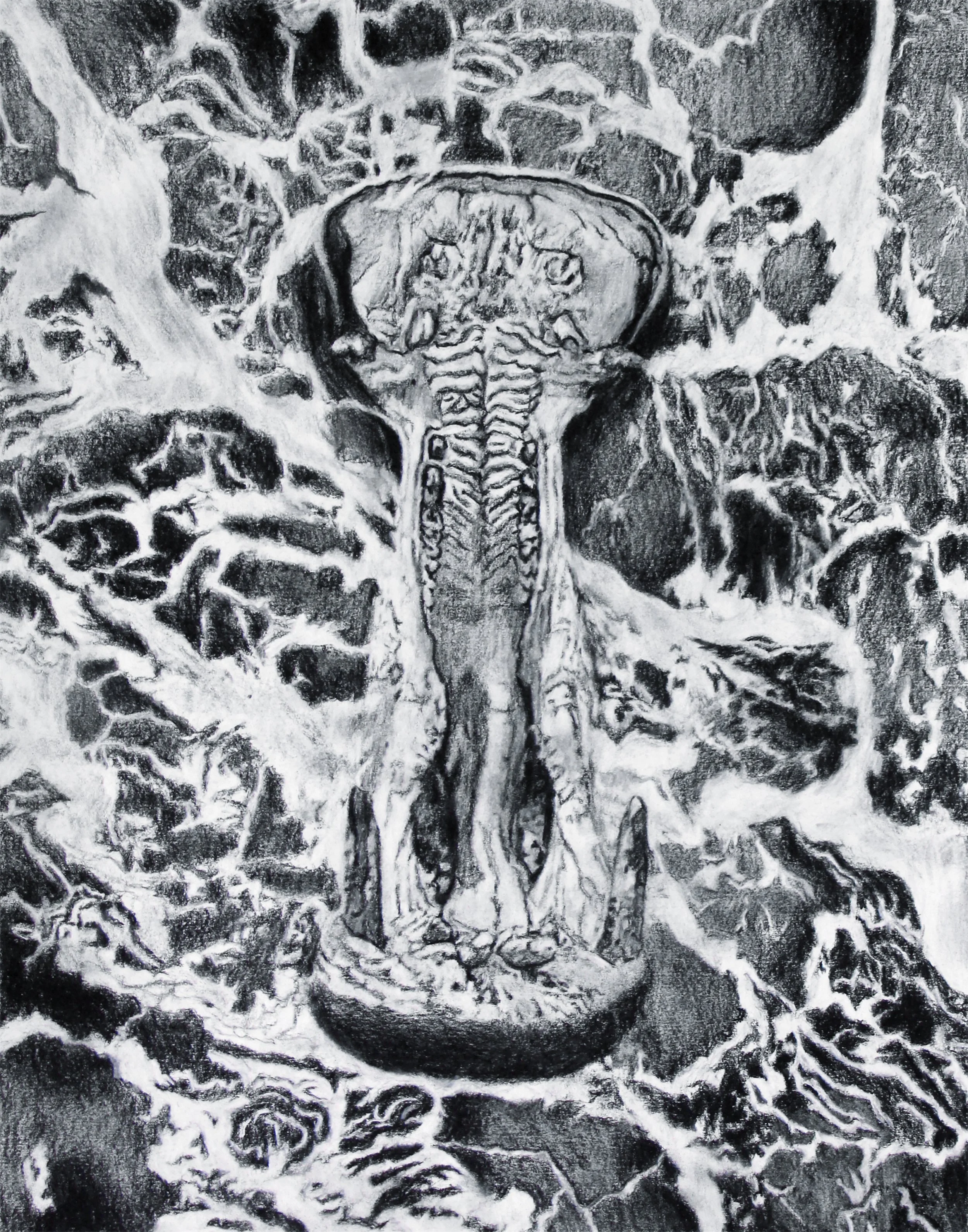 Charcoal on acid-free 400 series Strathmore bristol paper, 2016. Sprayed with a fixative to prevent smudging. Hand-signed by the artist and framed. As with any indoor artwork, avoid exposure to direct sunlight. Reproductions may not be made without permission.